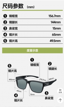 - 超轻材质,佩戴零负担:部分款式的镜架采用来自瑞士的超轻科技材料 TR90 塑胶钛,这种材料具有超轻、超韧性的特点,耐撞耐磨,摩擦系数低,能够直接减轻鼻梁和耳朵的负担。整副墨镜重量仅有 24 克,相当于 4 枚一元硬币的重量,佩戴起来几乎感觉不到它的存在,长时间使用也不会感到疲劳。在户外活动中,轻便的墨镜不会成为你的负担,让你能够更加自由地享受运动的快乐。