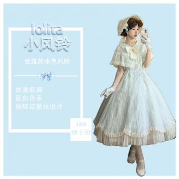小风铃 优雅水色风铃cla系夏季新款优雅千金风lolita重工连衣裙女