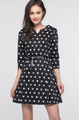 艾格2016春季圆点连衣裙v领正式职场通勤法式小众裙